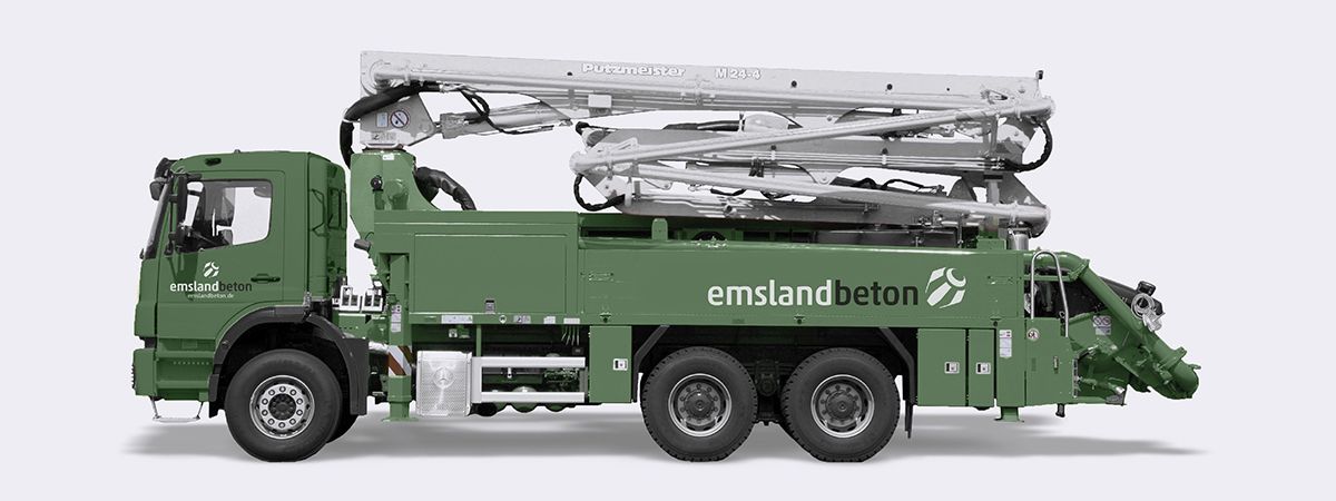 Ein perfektes Team: Die kompakte M24 Alleskönnerin mit unseren erfahrenen Maschinenführern. Jetzt mieten bei Emslandbeton!