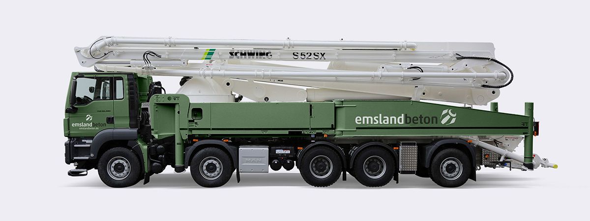 Ein perfektes Team: Die M52 und unsere erfahrenen Maschinenführer. Jetzt mieten bei Emslandbeton!